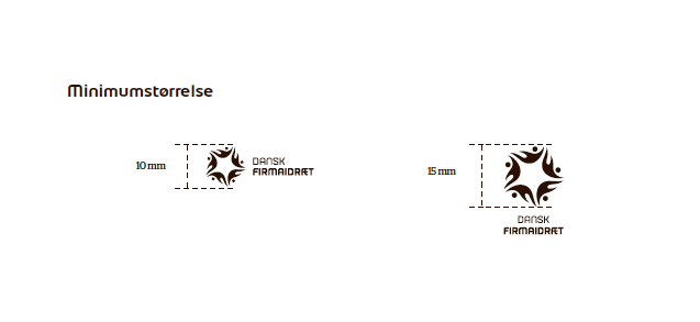 Dansk Firmaidræts logo må ikke skaleres til mindre end den angivne minimumstørrelse (10 mm i bredformat og 15 mm i højformat). Sådan sikrer vi, at logoet altid fremstår tydeligt og læsbart.